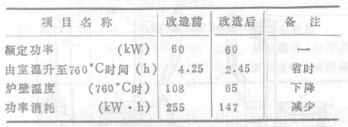 在350kg井室熔煉電阻爐中,改造前和改造后熔煉第二爐所用時間縮短了1小時。據(jù)統(tǒng)計已改造的6臺井室爐及2臺箱式爐的升溫時間減少20%~40%,熱效率提高15%以上。