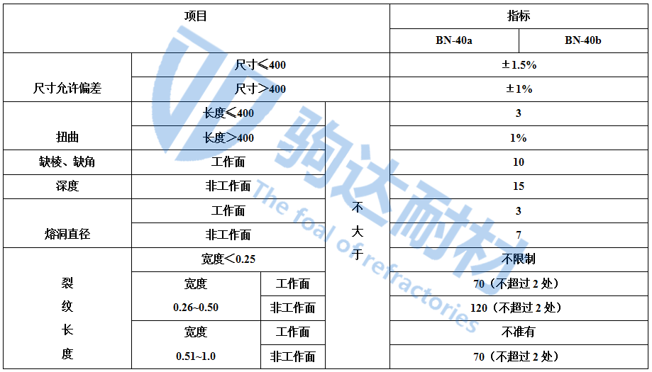 表2 玻璃窯用大型粘土質(zhì)耐火磚的理化指標