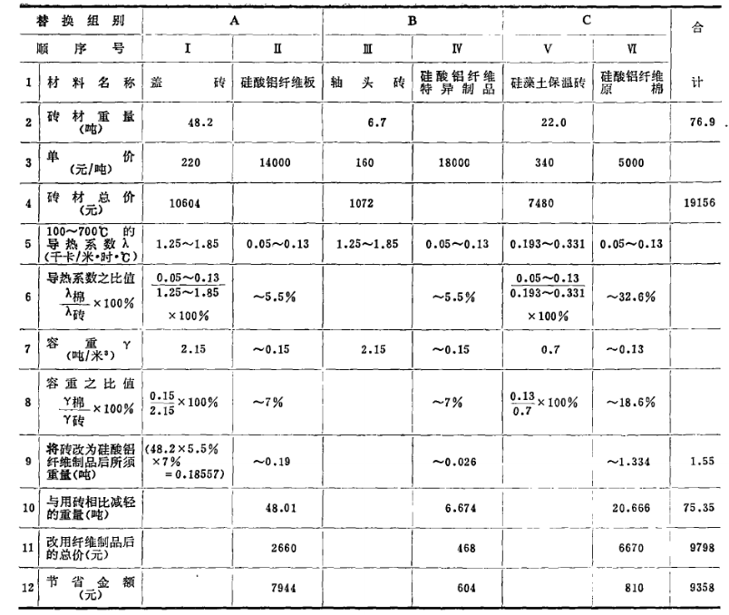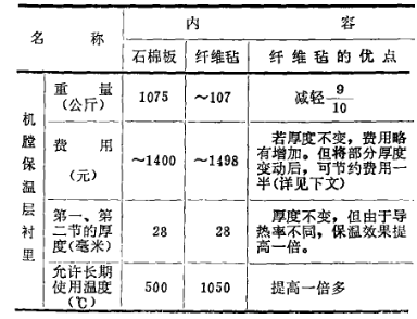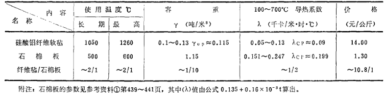一、采用硅酸鋁纖維軟氈代替石棉板,這兩種材料的主要參數(shù)及價格列于表4: