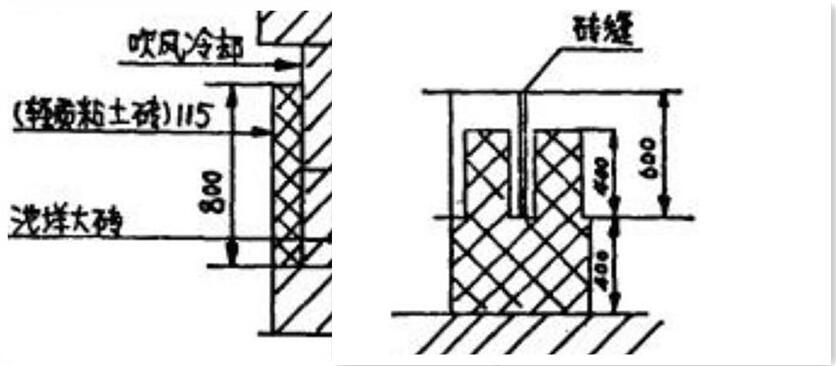 對池壁來說,根據(jù)慣例,侵蝕和破壞得最嚴(yán)重為斜液面處及磚縫,在采取保溫措施前盡量做到① 對池壁磚的砌筑平面進行蔫磨使其磚與磚之間的縫隙達到最小尺寸 ② 盡可能采用大規(guī)格磚,減少磚縫數(shù)。池壁保溫材料一般為輕質(zhì)粘土保溫磚。